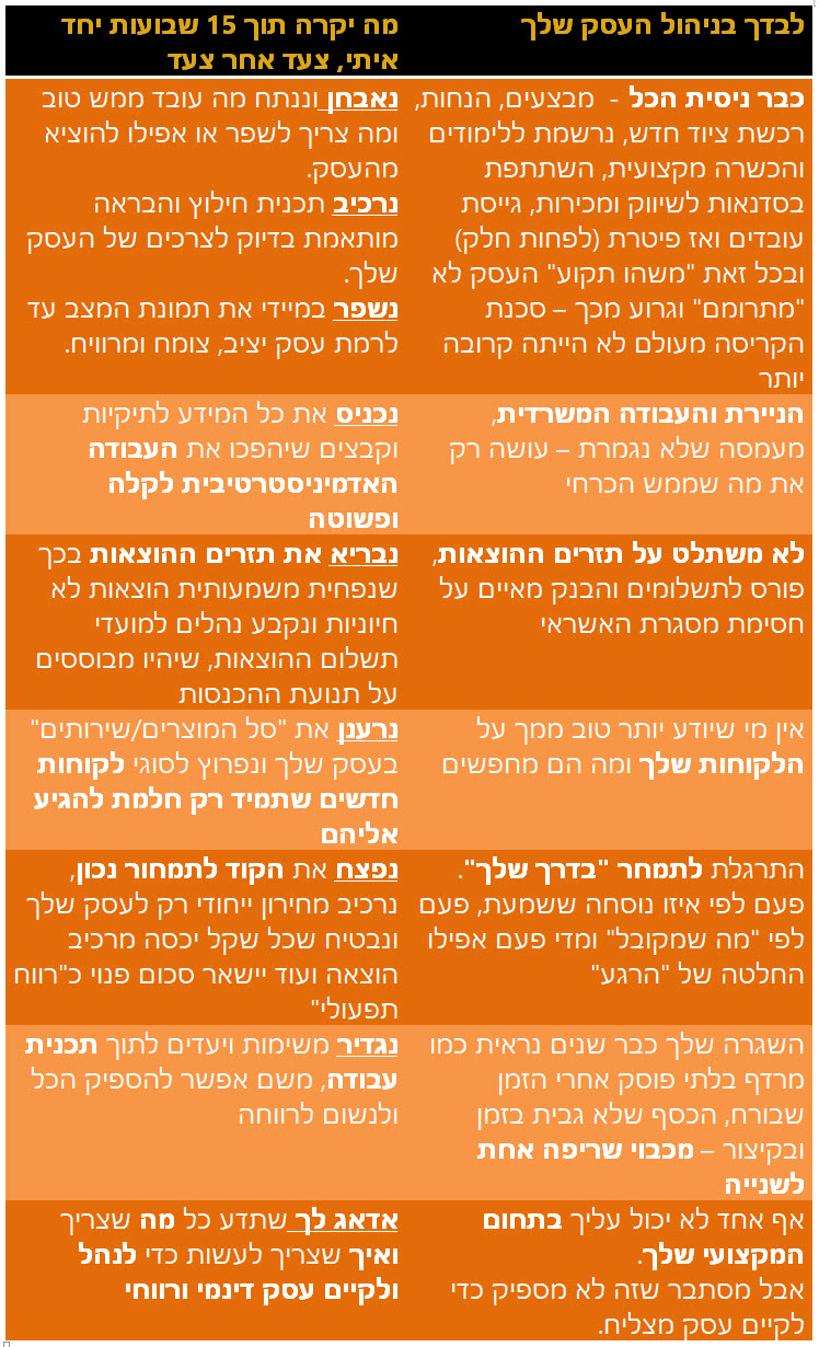 מתוך הדרכה לבעלי עסקים בנושא שיפור יעילות ורווחיות של העסק: